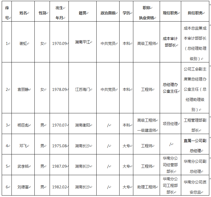 【概要描述】 为了加强对干部选拔工作的监督,提高识别和任用干部的准确程度,现对公司党委研究决定的谢虹等6名同志拟任职务进行任前公示: